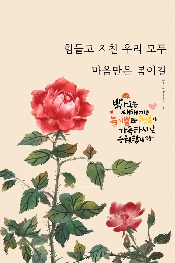하루하루를 정직하게 살아온 당신, 그 노력의 흔적이 모여 지금의 한 해를 만들었습니다. 쉼 없이 흘린 땀이 빛나는 이유는 바로 당신의 진심이 담겨 있었기 때문이지요. 병오년에는 기쁨은 더하고, 슬픔은 작아지고, 사랑은 풍성해지고, 행복은 나눌 수 있는 따뜻한 날들이 이어지길 바랍니다. 새해에도 건강과 행운이 함께하시길 기원합니다.